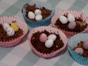 - Mix the chocolate with the Shredded Wheat until nicely coated.