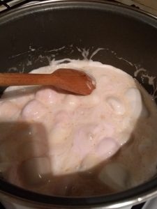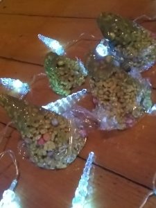 - Pour the green dye into the rice krispies and marshmallows (depending on how green you want them you might need to use more green dye.)