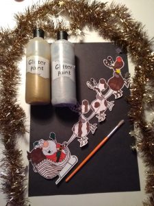 - Using a small paintbrush, dab a little bit of the glitter glue onto each section of the pine cone